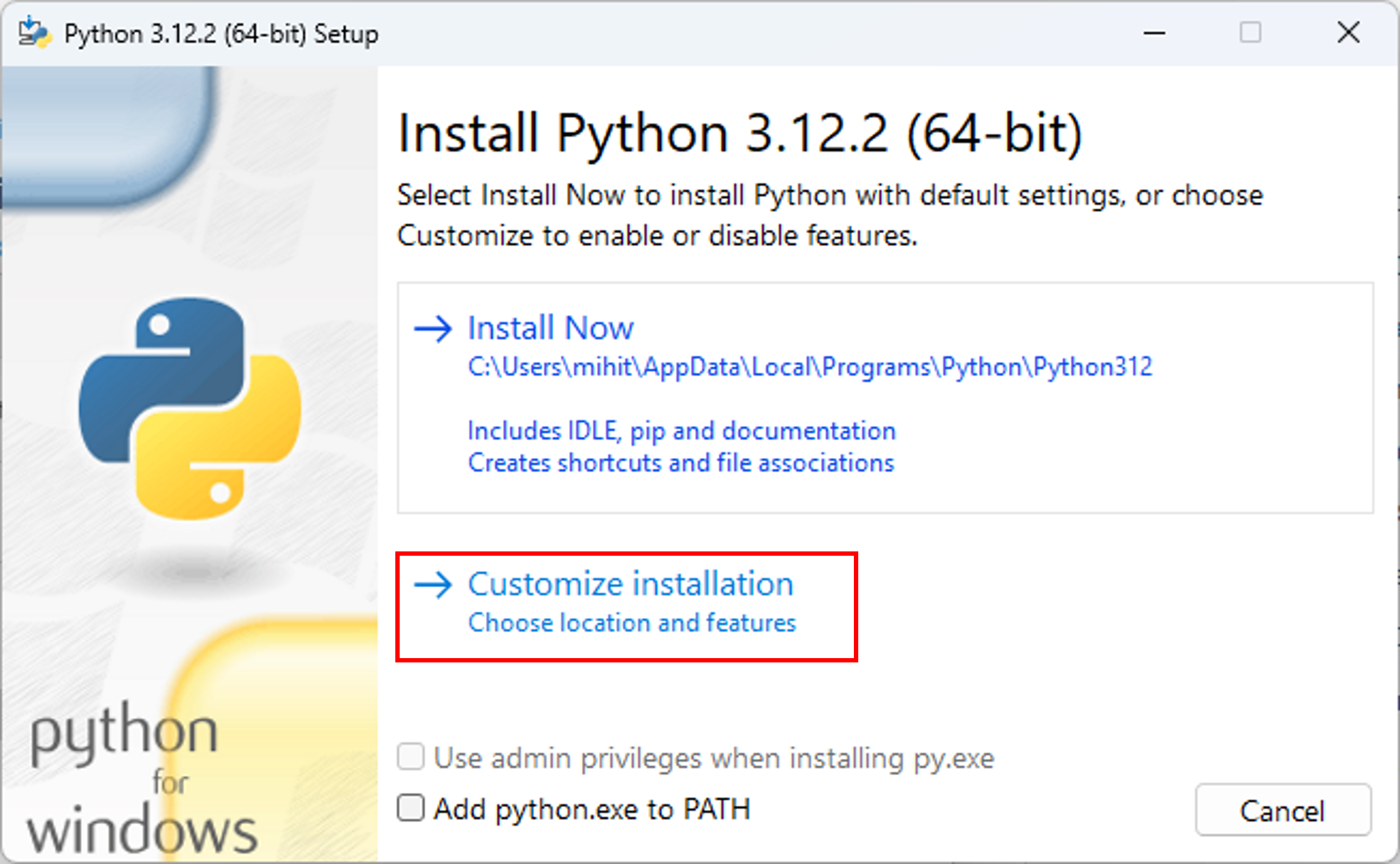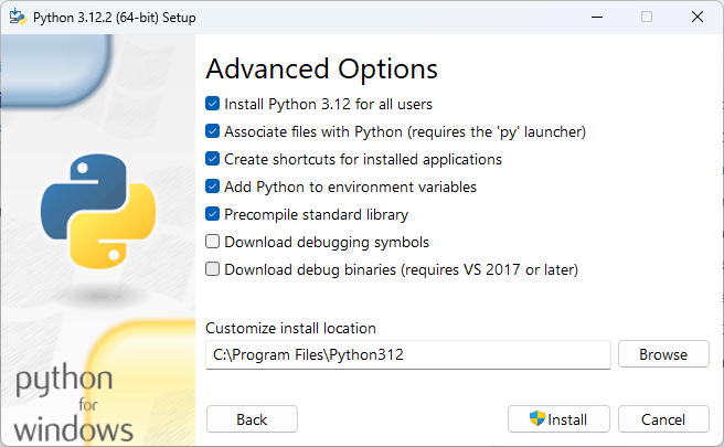 - It is advised to install Python for all users to prevent dependency issues.
