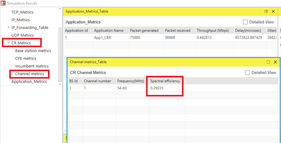 This metric is available in the CR Channel Metrics in the NetSim results dashboard. The Spectral Efficiency obtained in the results dashboard can also be calculated through the Packet Trace.