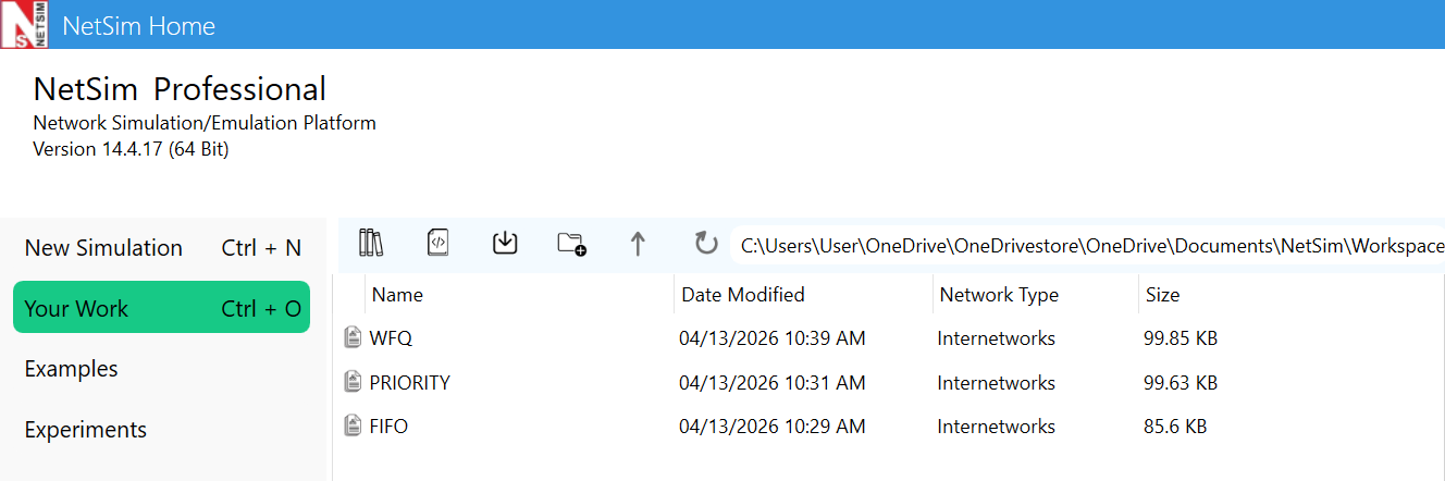 (refer this article https://support.tetcos.com/support/solutions/articles/14000128666-downloading-and-setting-up-netsim-file-exchange-projects to import the attached files in NetSim). To access this example, navigate to "Your Work" on the NetSim home screen, where you'll find all the configuration files associated with "Queuing."