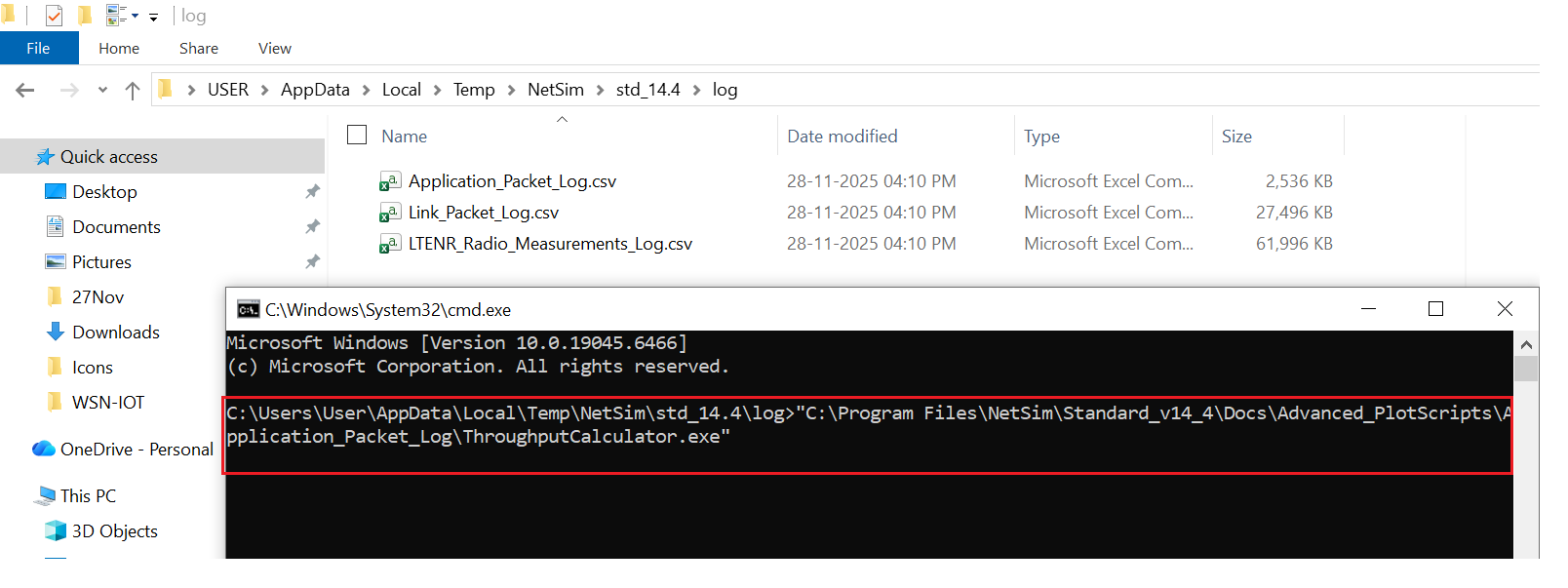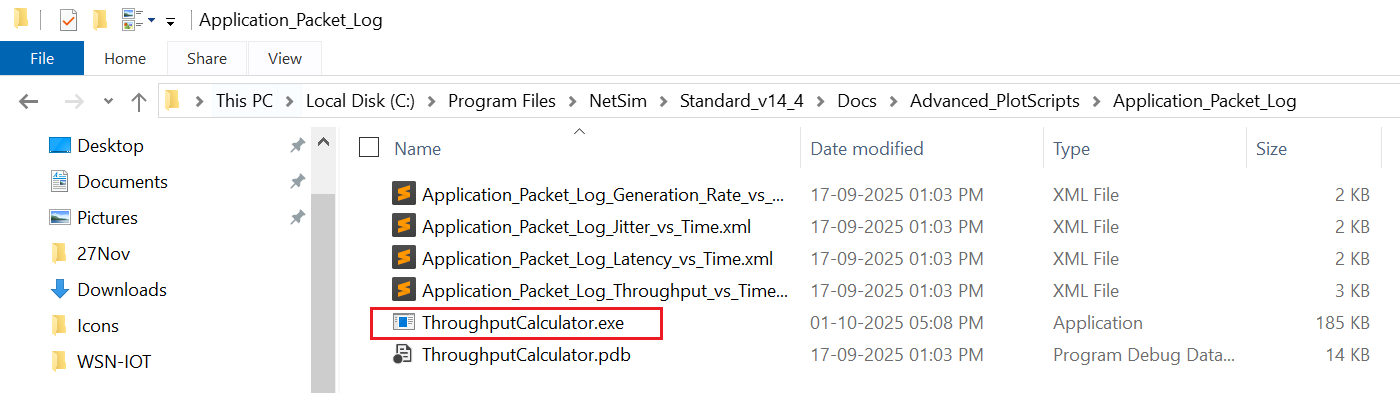 Once the simulation completes, run the ThroughputCalculator.exe located in the Advanced_PlotScripts folder of NetSim installation directory using the following command: